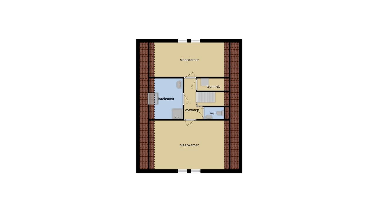 De eerste verdieping van deze woning heeft drie slaapkamers en een badkamer met een douche, wastafel en een tweede wandcloset. Daarnaast is er op de zolder ruimte voor een werkplek en zitten hier de technische installaties, net als de aansluiting op de wasmachine.