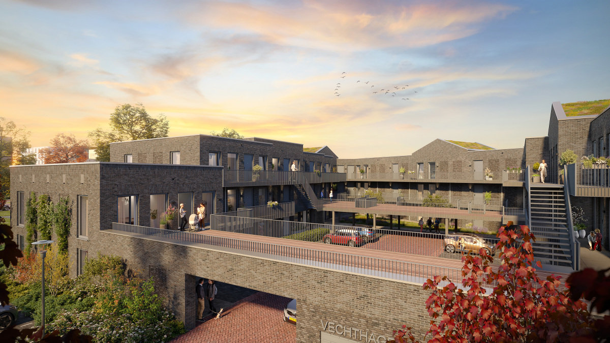 In de gloednieuwe woonbuurt De Vechte verrijst de Vechthage: een stijlvol woongebouw met 31 duurzame appartementen. Je woont hier direct aan de rivier de Vecht, op loopafstand van het centrum van Hardenberg en alle voorzieningen. Het trapeziumvormige ontwerp geeft het gebouw een moderne uitstraling en biedt ruimte aan verschillende woonbelevingen.