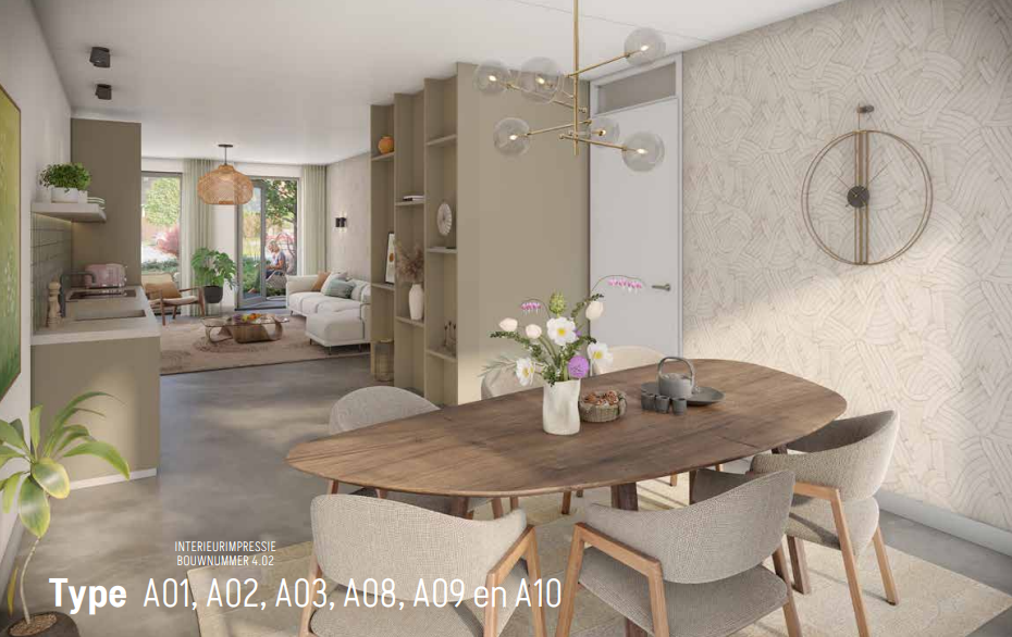 De woningen zijn gasloos en uitgerust met een warmtepomp en vloerverwarming. Dat zorgt voor een aangenaam binnenklimaat in elk seizoen en ’s ochtends nooit meer koude voeten. Dankzij energielabel A+++ woon je bovendien energiezuinig en toekomstbestendig, met lage maandlasten.