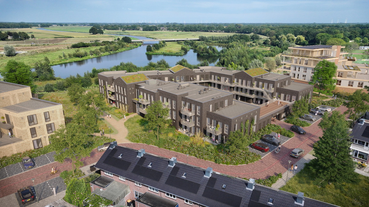 De woningen in De Vechte zijn ontworpen om jarenlang mee te gaan. Er is gekozen voor een solide constructie en duurzame materialen. Baksteen bijvoorbeeld: onderhoudsarm, tijdloos en mooi van kleur naarmate de jaren verstrijken. De gebouwen voldoen aan de nieuwste energiezuinige normen en zijn voorzien van energie-efficiënte installaties, zoals warmtepompen, vloerverwarming en vloerkoeling.Tussen de woongebouwen zorgen groene zones voor rust en ruimte. Je hoort er het gezang van vogels en het ruisen van bladeren, een stukje natuur midden in Hardenberg. Huismussen, zwaluwen en scholeksters vinden hier hun plek net zo goed als de bewoners. Laaggelegen delen van het terrein worden benut als wadi’s die regenwater opvangen en geleidelijk afvoeren. Zo blijft het groen gezond en blijft de buurt ook bij zware regenval prettig bewoonbaar. Auto’s en ander verkeer blijven intussen op de Kruserbrink, zodat de groene zones rustig en groen blijven. Met al deze keuzes groeit De Vechte uit tot een toekomstbestendige woonbuurt: duurzaam, natuurrijk en vriendelijk voor mens én milieu