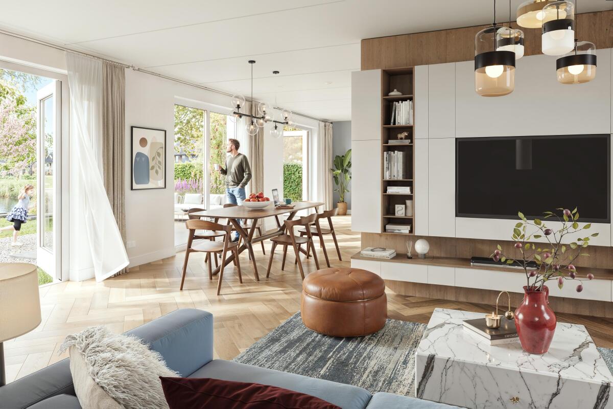 Duurzaam wonen gaat op De Roeibaan bijna vanzelf. Je zit midden in het groen, met het Woldmeer en kleine rieteilandjes recht tegenover je tuin, waarmee je privacy is gewaarborgd. De woningen worden volgens de nieuwste inzichten gebouwd, met pv panelen, een warmtepomp, vloerverwarming en uitstekende isolatie. Dat voel je in het comfort in huis en zie je terug op je energierekening. Nestkastjes bieden ruimte aan vogels en vleermuizen, waardoor de biodiversiteit een extra impuls krijgt. Zo woon je niet alleen aan het water, maar ook zichtbaar in balans met de omgeving.